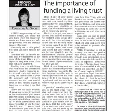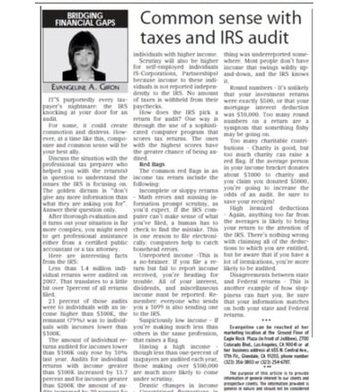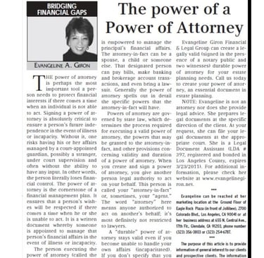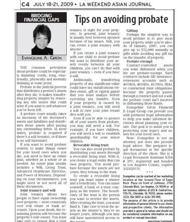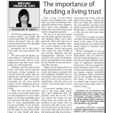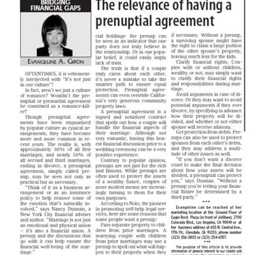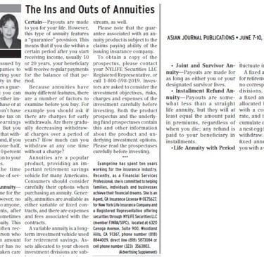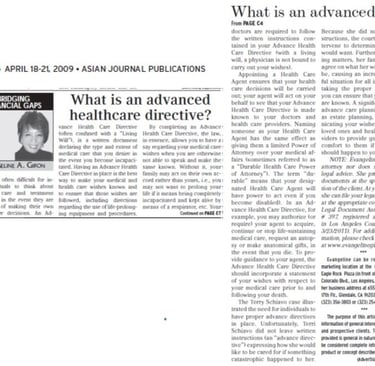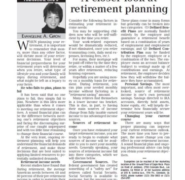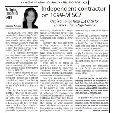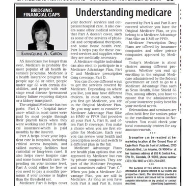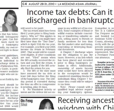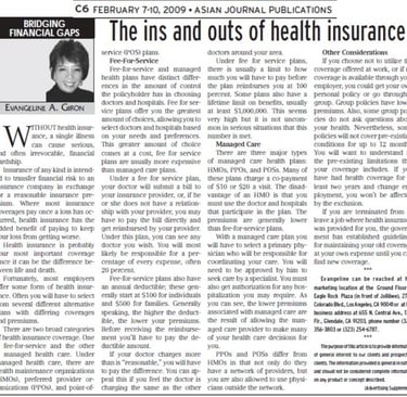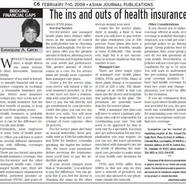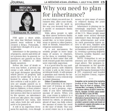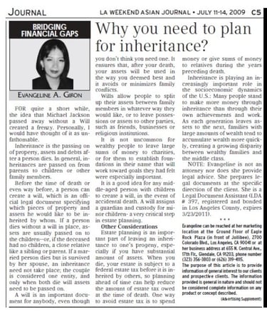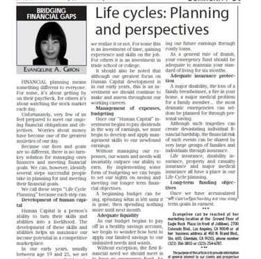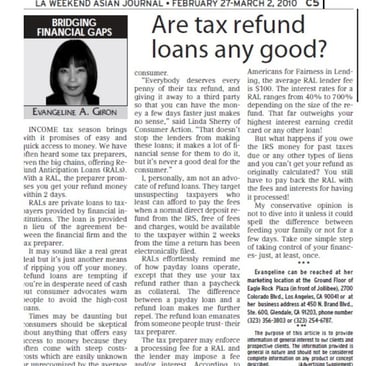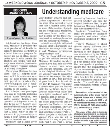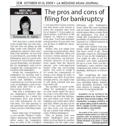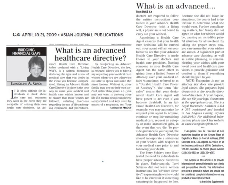 Evangeline authored a weekly column titled “Bridging Financial Gaps” for four years at the Los Angeles Asian Journal, the largest Filipino-American newspaper in the United States, from 2008 to 2012.
